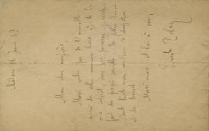 ZULOAGA IgnacioCarte autographe signée, adressée à M. Bartholomé. Zumaya, 18 mars 1915 ; 2 pages in-16 oblongues avec enveloppe timbrée.« C’est avec grand plaisir que je recommanderai M. Otero, et je souhaite que nous puissions obtenir le resultat voulu. Je pense aller à Paris la semaine prochaine, et j’aurai alors le plaisir de vous voir. »