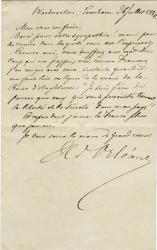 ORLÉANS FrançoisLettre autographe signée « François d’Orléans », adressée à son père Louis-Philippe. 14 mai 1829 ; 2 pages in-8° sur papier à décor filigrané. « J’ai été bien content d’apprendre que vous êtes arrivé de bonne heure et en bonne santé à Lille. J’espère que vous êtes maintenant en Angleterre et que Charles n’a pas été trop malade sur mer. Le beau temps qu’il fait ici me fait juger de celui que vous devez avoir eu en route. Depuis votre départ j’ai essayé de bien faire ce qui ne m’a pas toujours réussi. Tout le monde se porte bien ici, et le parc est charmant car il est presqu’enterré sous les lilas. Adieu, cher papa, je vous embrasse de tout mon cœur ainsi que Charles. » Belle lettre à l’âge de onze ans.