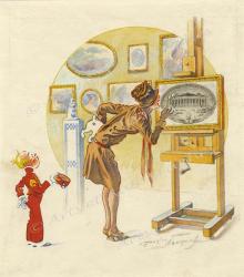 NEUMONT Maurice Louis HenriCorrespondance de 13 lettres autographes signées et une amusante aquarelle originale, « Une expertise au Salon » signée. 1913 à 1921 ; soit 24 pages in-8°, la plupart avec en-tête illustré « Société des Dessinateurs - Humoristes » ou « Salon des Humoristes », adressées à l’avocat Levy-Oulman, une enveloppe conservée. Il annonce que « votre dessin est prêt ». Plusieurs lettres de recommandations d’artistes, notamment pour Charles Odis ( « Carlo à la Société des Dessinateurs - Humoristes » ) qui a besoin de ses « lumières » pour une petite affaire. « Odis est un artiste très spirituel qui j’en suis certain vous sera vite très sympathique. » Il annonce à son correspondant que son numéro 425 [certainement à une tombola de charité pour la Société] a gagné « un bel original de Charly ». Neumont retouchera le pastel de l’avocat : « Mais mon vieux, vous parlez d’un marron ! Il n’y a pas que la main qui a été amochée, tout le reste a par contre coup écopé et c’est un véritable et complet habillage que je suis obligé de lui faire. Je vous bénis ! […] Il n’y a rien à craindre pour votre pastel, il va y gagner du tout au tout, mais je vous avoue que cela ne me fait pas rigoler follement. Je n’ai qu’un espoir qui me console, c’est celui de vous être agréable. » Devant l’affluence au « Repas des Artistes », Neumont ne pourra « caser » son correspondant pour le lendemain, mais « je m’arrangerai pour vous réserver des places un prochain jour comme avocat des artistes ». Il craint de n’avoir le temps de faire le dessin pour le programme de Levy-Oulman : « Je suis abominablement pris en ce moment par l’organisation du Salon des Humoristes ». Une lettre concerne un meuble ressemblant à celui qu’il a dans son atelier et que son correspondant aimerait acquérir. Dans une autre, il demande à l’avocat d’effectuer les modifications aux statuts de la Société et de les mettre en règle. On joint une attestation autographe signée, sur papier timbré, de bonne moralité, en faveur d’une mère de famille et un faire-part de son décès et coupures de presses à cette occasion.