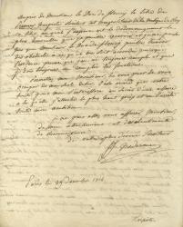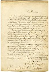 NADERMAN François-JosephLettre autographe signée adressée à Monsieur [Mormare] rue Royale. Paris, 29 décembre 1814, 2 pages in-4 , petite déchirure au niveau du cachet (ne touche pas le texte) et fente sur le pli. « Monsieur je viens d’apprendre que pour la nouvelle organisation de la chapelle du Roy, mes appointements ont subi une réduction de cinquante francs. D’après l’intérêt que toujours vous avez bien voulu me témoigner, monsieur, je n’hésite pas à m’ouvrir entièrement à vous à ce sujet [...] Vous savez que c’est le prix qu’on met aux choses qui établit leur différence [...] je me vois mis au nombre des récitant ordianaire. » Il y explique que sa réputation et son talent mérite une distinction salariale et non être payé comme simple exécuteurs. « Vous n’ignorez pas, Monsieur, que depuis que je tiens à ce corp de musique toutes les symphonie religieuse de harpes, cor, violoncelle et autres instruments exécutés à la chapelle tant de ma compositiob que les parties de Harpes qui se trouvent dans les messes de Mr Leseur ne sont faites de même que par moique pour celles composées pour Mr Martini, je serais de même chargé de l’arrangement des parties de harpes et qu’enfin je n’exécupe aucune musique soit à la ocur ou chez Monsieur les premiers gentilshommes qu’elle n’ai été composée par moi. » Il ajoute cela que ses oeuvres imprimés ont quelques succès. C’est pourquoi il sollicite son correspondant pour demander au Duc de Fleury « le titre de premier harpiste recitant et compositeur de la musique du Roy. Ce titre auquel j’aspire est le dédommagement le plus honorable que je puisse recevoir et je ne pense pas que le Duc de Fleury puisse trouver des obstacles à ce qu’il soit accordé »