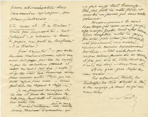 NADAUD GustaveLettre autographe signée, adressée à une femme. 18 janvier 1867 ; 1 page in-8°. « Je vous remercie de votre bon souvenir et je prends note de vos réunions du samedi, mais comme le plus tôt c'est le mieux, je me réserve d'abord pour votre soirée de demain. »