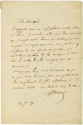 NADAUD GustaveLettre autographe signée, adressée à Mme Alfred Tattet. Paris, 10 février 1848 ; 1 page in-8°. « Je compte aller dimanche prochain m’asseoir à votre table pour faire mes derniers diners avant le régime de 15 jours que je vais suivre à partir de lundi prochain. Vous voyez comme je prélude à la diète ».