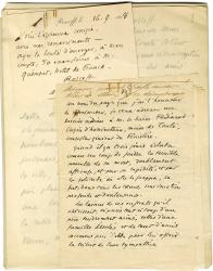 MORELLET AbbéLettre autographe signée, adressée à M. Godin, négociant à Lorient. « Thimer, près Chateauneuf en Thimerais, le 20 juin » [1789] ; 3 pages in-4°, adresse sur la 4e page.Très belle lettre écrite le jour du serment du Jeu de paume, prélude de la Révolution française.« Ne croyes pas qu’il y ait eu de ma part aucune negligence à repondre à votre obligeante lettre et à vous remercier de votre envoi non moins obligeant de bon caffé dociden[d’Occident] et de Betelfagui [Turquie]. Le lieu d’où vous voyes ma lettre datée me servira d’excuse. […] Je n’y recois les lettres que deux fois par semaine quoique je ne sois qu’à 22 lieues de Paris ce qui entre dans les admirables arrangemens de mrs [messieurs] des postes et ce qui est très facheux pour ce pays cy et puis votre lettre est restée à Paris parce qu’on m’y attendait de jour à autre et enfin je vous repons d’icy parce que mon incertitude sur mon retour est encore la même. J’ai envoyé votre lettre à Madame Helvetius à Auteuil afin qu’on y recut le caffé et qu’on payat le voiturier en mon absence mais je n’ai pas encore reçu nouvelle de son arrivée. Il faudra s’il vous plait que vous attendiez mon retour à Paris pour etre payé voilà à quoi on s’expose avec trop de confiance pour des hommes qui vont courant comme moi et que leurs creanciers ne savent où prendre, mais vous ne perdres rien. Pour parler plus serieusement faites moi la grâce de m’indiquer quelqu’un de vos correspondans à Paris à qui je puisse remettre ce que je vous dois à mon arrivée qui sera à ce que j’espere d’icy à 7 ou huit jours. Je verrai avec grand plaisir votre député lorsqu’il sera question de notre chere compagnie qui ne tiendra pas je crois beaucoup contre le retour de vos reclamations. Je suis icy asses mal au courant de vos nouvelles. Je sais seulement que les espoirs sont encore loin d’etre raprochés. Je me felicite tous les jours de n’etre pas dans cette galere, je plante mes choux, je mange mes pois et mon lait. J’arrange la retraite de mes vieux ans qui est fort jolie. Songes bien que si vous venes à Paris et que vous ne preniez pas la route d’Angers qui passe à ma porte et qui est fort belle je ne vous le pardonne ni à la vie ni à la mort. Quand vous etes à la poste de Chateauneuf vous etes precisement à 500 toises de Thimer où vous trouveres un bon lit et bon visage d’hôte et si mes femmes y sont je vous y promets les plus jolis reversis du monde. Vous voyes bien que je ne puis vous donner de nouvelles des affaires de Paris avec lequel j’ai des communications si difficiles. Les papiers publics vous en instruisent mieux que je ne pourrais faire. Mais je peux vous dire du pays que j’habite une mauvaise et une bonne nouvelle. La mauvaise est que la misere est horrible et le bled à 55# le septier de Paris de 240 #, la bonne est que la récolte dans cette partie de la Bausse (car je suis encore en Beausse) n’est pas mauvaise et qu’on peut esperer quelque soulagement. Je vous prie de ne point m’oublier et même de me mettre au nombre des personnes sur le tendre attachement desquelles vous aves droit de compter. Je suis avec une respectueuse consideration, Monsieur, Votre très humble et très obéissant serviteur. L’abbé Morellet. »