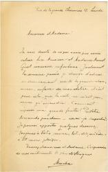 MUCHA AlphonseLettre autographe signée. « Rue de la Grande Chaumière 13. Lundi » ; 1 page in-8°. « Je suis désolée de ne pas avoir pu venir saluer hier Monsieur et Madame Manuel. Quel mauvaise infortune. Justement la semaine passée je change d’adresse en déménageant ure de la grande chaumière, en face de mon atelier et c’est pour cela, que la carte ne m’est parvenue qu’aujourd’hui. Comment réparer ma grande faute ? Peut-être dimanche prochain — serai-je importun ? Je pourrai apporter quelques dessins? Toujours à votre service, votre disposition, c’est mon plaisir. »