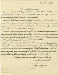 MOREAU-NÉLATON ÉtienneLettre autographe signée. Paris, 15 août 1917 ; 2 pages 1/2 in-8°. « Votre lettre vient de m'être retournée à Paris, où je suis actuellement. J'apprécie l'intérêt que vous accordez à mon histoire de Fère en Tardenois, et je me fais un plaisir de vous en adresser un exemplaire. Je vous remercie de me faire connaître vos trouvailles d'émaux et de verreries remontant à l'époque gallo-romaine. Elles me touchent particulièrement et l'envoi que vous me proposez sera accueilli avec reconnaissance. La guerre m'a fait suspendre mes travaux céramiques ; mais j'espère bien les reprendre dans un prochain avenir. J'aurais grand plaisir à faire les essais que vous me suggérez. Dans de meilleurs temps, il me serait fort agréable de vous rendre visite et de faire la connaissance de vos découvertes archéologiques. Espérons qu'un jour, les circonstances me le permettent. »