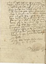 MONTMORENCY Anne, duc deLettre signée, adressée à M. de Vely. 1528 ; 2 pages grandes in-4°, montée sur un support papier, traces de mouillures dans le bas.