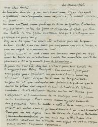 MOREAU Luc AlbertLettre autographe signée, adressée à André Dunoyer de Segonzac. 20 mars 1945 ; 1 page 1/2 in-4°. « La semaine dernière, je me suis trouvé avec Dig et Daragnès à Galliere où s'organise une exposition d'artistes américains du front. [ ] En nous quittant, nous parlions du livre de Galtier Boissière et je protestais contre les faux et stupides propos qu'il a cru habile de me faire endosser lorsqu'il s'attaqua au Voyage des peintres. [ ] Dig m'a dit que tu avais été attristé par ces lignes. Je suis désolé que tu aies pu supposer un seul instant que ces ragots émanent de moi ». On joint la réponse d'André Dunoyer de Segonzac, le 23 mars 1945 ; 1 page in-4°, enveloppe timbrée jointe.