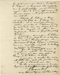 MONTHOLON Charles-Tristan, comte deLettre autographe signée. Paris, le 8 novembre 1836 ; 4 pages in-folio (33,5 x 22 cm) « La toute aimable bienveillance avec laquelle vous avez bien voulu me permettre d'ajouter quelques renseignements au dire de Me Cremieux, me donne l'espoir que vous accueillerez avec une égale obligeance la note que j'ai l'honneur de vous adresser. Je commandais une brigade d'infanterie, division Marchand, corps de réserve du Lieut. Gal Grenier, défense de Paris, lorsque dans la soirée du 22 au 23 juin, l'Empereur me fit appeler et me dit avec émotion : Montholon tout le monde m'abandonne, même Drouot, m'abandonnerez-vous aussi ? Non Sire, jamais. Je vais faire dire à Davoust de vous donner l'ordre de m'accompagner ; je vais aux Etats-Unis. Vers 2 h du matin, le Mal Davoust qui réunissait les fonctions de Ministre de la Guerre et de généralissime de l'armée, en vertu d'un arrêté du gouvernement provisoire m'envoya chercher à son quartier général, et m'ordonna de remettre sur l'heure le commandement provisoire de ma brigade au plus ancien colonel et de me rendre sans délai auprès de l'Empereur Napoléon pour l'accompagner et suivre en tous lieux jusqu'à nouveaux ordres. Sur mon observation qu'un ordre verbal plus que suffisant pour marcher à l'ennemi, ne pouvait me suffire pour lui tourner le dos, le Mal dicta l'ordre écrit dont la copie littérale est dans l'attestation ampliative signée par le chef d'État du Mal Prince d'Eckmul, le gal César Laville. Cette attestation est jointe aux pièces. Jamais ordre donné par un général en chef, jamais ordre donné par le Prince de Neuchatel lorsqu'il était major Gal de l'Empereur & Ministre de la Guerre, n'a été déposé en minute ou communiqué de règle générale au ministère de la Guerre. Le fait est si notoire que les archives du Ministère ne possèdent qu'une partie des registres d'archives du Prince de Neuchatel et qu'il a fallu une ordonnance pour donner au Ministère le droit de réclamer dans les inventaires des généraux en chefs, les correspondances officielles et les registres d'ordre. Aussi M. le Mal Maison, que sa conscience à cet égard, arrêta dans son excès de malveillance, s'appuya-t-il surtout sur ce que l'ordre n'a pas été confirmé par le gouvernement légitime du Roi Louis XVIII et est conséquemment frappé de nullité. M. le Mal ne sait probablement pas que le Roi Louis XVIII a fait payer sur sa liste civile, sur le temps qu'ils estiment à Ste-Hélène, M. le Cte Bertrand de son traitement de grand Maréchal, MM. Marchand, Saint-Denis, Noverras, Pierron, Cipriani, de leurs gages pour leur service pendant les CentsJours auprès de l'Empereur et que Madame la Comtesse Bertrand, elle-même, a tenu de la liste civile, les appointemens connus dans le Palais pendant les Cent Jours. Mais enfin les chambres n'ont elles pas fait payer tous les services des Cent Jours ? Le gouvernement français recevait constamment par son commissaire à Ste Hélène, des dépêches signées de moi, dans mes rapports avec le gouvernement anglais comme officier général attaché au service de l'Empereur. Toute la correspondance officielle se faisait avec moi. Le gouvernement du Roi m'aurait donc considéré comme ayant abandonné mes drapeaux et fait condamner comme déserteur ou du moins rayé des cadres de son armée sil ne m'avait reconnu comme en mission. Car comment supposer qu'il eut pour moi une manière exceptionnelle d'agir, et que par respect pour un dévouement extrême à l'homme qui l'avait mis hors de la loi peu de mois auparavant, il ne m'ait pas traité comme les 30 officiers généraux qu'il a bannis ou fait condamner à mort. [ ] Seul, je serais donc indigne, repoussé par le seul fait que j'ai augmenté la dette de la France en fermant les yeux de Napoléon. Le gouvernement du roi Louis XVIII était si loin de me considérer comme douteux, qu'aussitôt mon arrivée en Angleterre à bord de la frégate Le Camel, avec le deuil de l'Empereur, l'ambassade de France me notifia d'attendre à Londres la décision que le Conseil des Ministres allait lui communiquer relativement à ce qu'il appelait le Deuil de Napoléon. En effet quelques jours après, l'ambassade me remit mes passeports et ceux des personnes de la maison de l'Empereur et me fît connaître les intentions du Gouvernement. Ce n'était pas encore assez. Deux heures après mon arrivée à Paris, le Sieur de Richelieu, Premier Ministre Président du Conseil me fait appeler au nom du Roi et me notifia les décisions du Conseil relativement au dépôt légal du testament et codiciles. Le Comité de la Guerre auquel le Mal Mortier a envoyé l'examen de ma réclamation a exigé la justification des faits que je viens d'exposer. [ ] Ces pièces lui ayant été délivrées, il a unanimement reconnu la justice de ma réclamation. Le Ministre, amiral de Rigny, a approuvé l'opinion du Comité et le 15 mai 1835 le lieutenant Gal Schramm Directeur Gal m'écrit : que le Ministre avait décidé que ma réclamation en rappel de solde pour mon service à Ste Hélène fera l'objet d'une proposition spéciale qu'il serait présentée aux chambres avec le budget de 1837. Mr le Mal Maison n'a pas confirmé cette décision, ou pour mieux dire n'a pas voulu qu'elle fut exemtée lors de l'établissement par [ ], des comptes pour le budget de 1837 et c'est alors seulement qu'après un an de convictions que ma réclamation était admise. J'eus indirectement avis de la décision prise comme affaire intérieure de bureau et écrivis au Mal Maison la lettre qu'il est plus à regarder comme une demande, et à laquelle il a répondu par l'avis de sa décision de rejet. Je comprendrais que la Gouvernement n'admit aucune réclamation de solde pour des services hors de sa sphere mais je ne puis comprendre qu'il ait reconnu la justice de la réclamation d'un banni ou d'un condamné à mort comme le Mal Soult, le Gal d'Erlon ou Lallemand, qu'il ai