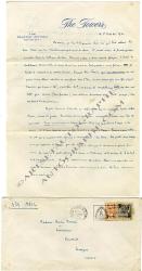 MAZAUD ÉmileLettre autographe signée. Paris, 26 juillet 1923 ; 1 page in-8°. « Je vous retourne ci-inclus signés les deux exemplaires du traité de “Dardamelle” pour la Hollande. Avec mes remerciements pour l’heureuse conclusion de cette affaire, recevez, cher Monsieur, l’expression de mes meilleurs sentiments. »