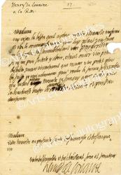 MAYENNE Henri de Lorraine, duc deLettre autographe signée « Henry de Lorraine », adressée à la Reine mère Marie de Médicis. [1620] ; 1 page in-4, adresse au verso, cachet cire rouge aux armes (petite déchirure par rupture de l’autre cachet ; portrait gravé joint). Il a bien reçu la lettre de Sa Majesté, et s’excuse de ne pouvoir exécuter son commandement, étant encore souffrant : « je la suplie treshumblement me pardonner si je ne puis si toste y obéir, estant encor un peu desbille, mais incontinent que jaures un peut plus de forsse je mi acheminer pour rendre le service treshumble que je dois à vostre Majesté ». Il prend « la hardiesse de baiser les mains de Vostre Majesté ».
