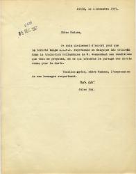 LECONTE MarieEnsemble de 2 lettres autographes signées :— 22 novembre 1916 ; 1 page 1/2 in-8°. « Merci cher Monsieur de l’envoi de votre beau livre Voilà un document du coeur. Vous avez écrit plusieurs pages d’une intensité d’émotion avec de très simples mots ! Je ne peux résister de penser tant de belles et nobles émotions car ce sont des choses vécues par un homme... et un grand coeur de français. »— 11 février 1917 ; 1 page 1/2 in-8°. « J’ai vu Monsieur Fabre moi-aussi. Je vous conjure de ne voir en ceci que le contrecoup des événements actuels qui désorganisent tout... Si vous aviez pu entendre Monsieur Fabre, vous auriez pu tout de même avoir une très légitime satisfaction... D’ici là […] passera peut-être nous apporter trois actes ! que nous attendons de lui. Moi je regrette que nous ne puissions réaliser immédiatement notre projet ».