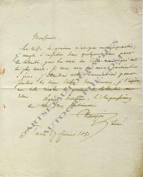 BLANQUI Jérôme AdolpheLettre autographe, signée « Blanqui aîné », adressée à Messieurs Jacquin frères, grainetier à Paris. Paris, le 29 février 1831 ; 1 page in-4°.À propos d’une commande de graines. « La caisse de graines n’est pas encore partie. Je compte l’expédier dans quelques jours pour la Colombie, par la voie des États-Unis, qui est la plus courte. Si vous avez un envoi particulier à faire, j’attendrai votre commodité pour joindre les deux caisses. Nous aurons, je l’espère, une belle récolte de graines de Colombie en retour. »