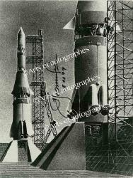 LEONOV Alexeï ArkhipovitchDeux grands photographies dont une signée. 36 x 27,5 cm. Texte au dos imprimé en russe.Ces photographies montrent une fusée spatiale au décollage. Signature au marqueur noir datée du 18 mars 1999.