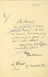 ROBIDA AlbertLettre autographe signée, adressée à Georges Moreau, directeur de La Revue Universelle. Le Vésinet, 3 février 1896 ; 1 page in-8°. « Je n’ai pas reçu les épreuves de l’article Rosny. Les dessins sont commencés, mais si vous pouviez m’envoyer ces épreuves je verrais à ne rien oublier. »
