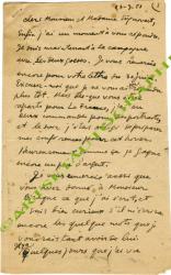 VLAMINCK Maurice deLettre autographe signée, adressée à Francis Carco. « Samedi, 19 octobre 1920 » ; 1 page in-4°. « Serais-tu assez aimable de me rendre les notes au crayon que je tai données pour le bouquin de la Nouvelle Revue Française. Je voudrais avoir ces notes sur la peinture, cela me rendrait service que tu me les expédies aussitôt ma lettre reçue. Quoi de nouveau ? Le Bouquin ? Quand venez-vous à la campagne ? Bien des choses à Mme Carco ».