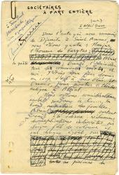 FARRÈRE Claude (Frédéric-Charles Bargone, dit)Manuscrit autographe signé, « Sociétaires à part entière ». « En mer, mars 1930 (bord el Biar) » ; 12 pages in-folio. Le manuscrit est dédicacé à Jean-Paul Merzbach. Conte dédié à Alfred Sexer.« Dans l’auto qui nous ramenait de Djemila à Saint-Arnaud, nous étions quatre : Nanjac, l’homme des barytes ; Abrial, le poète ; Ornano, l’administrateur des communes mixtes et moi. J’étais venu pour donner un coup d’œil à mes blés. Et Ornano, pour montrer le théâtre antique à Abrial ».