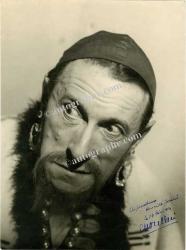 DULLIN CharlesPhotographie autographe signé. 14 décembre 1944 ; 240 x 180 mm. Grande photographie représentant l’acteur dans le rôle de Shylock dédicacée : « À Madame Joutel. Le 14 déc. 44 Ch. Dullin ».
