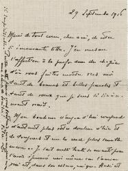 DUKAS PaulLettre autographe signée, adressée à Georges Pioch. Paris, 29 septembre 1916 ; 1 page in-12. « Merci de tout coeur, cher ami, de votre si émouvante lettre. Jen mesure laffection à la profondeur du chagrin doù vous faites monter vers moi tant de bonnes et belles paroles et tant de voeux que je sens sincèrement vrais ».