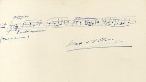 OLLONE Max d (Maximilien Paul Marie Félix, dit)Portée musicale autographe signée. 1 page in-4°. « Trio en la mineur pour violon. »