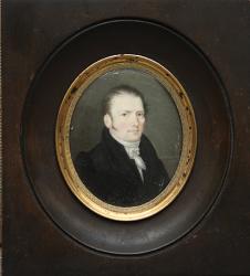 ÉCOLE FRANÇAISE DU XIXe SIÈCLE MINIATURE.Portrait d'homme à l'habit noir. 1829. 51 x 63 mm. Miniature ovale, sur ivoire, signée Philippot et datée 1829.