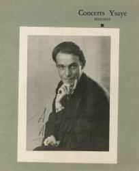 BRAILOWSKY AlexandrePhotographie dédicacée signée en Russe. 13 décembre 1932 ; contrecollé sur la couverture du programme des concerts Ysaye de la saison 1932-1933. Lors d’une série de concerts donnée au Palais des Beaux-Arts de Bruxelles, Braîlowsky interpréta l’oeuvre pour piano de Frédéric Chopin en six séances, entre le 2 et le 20 décembre 1932.