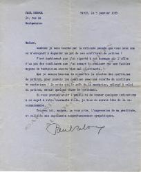 REBOUX PaulLettre dactylographiée signée. Paris, 5 janvier 1939 ; 1 page in-4°.Lettre à propos de recette gastronomique. « Combien je suis touché par la délicate pensée que vous avez eue en m’envoyant à déguster un pot de ces confitures de potiron ! […] Que je serais heureux de connaître la recette des confitures de potiron, pour pouvoir les combiner avec une recette de confiture de mandarines. »