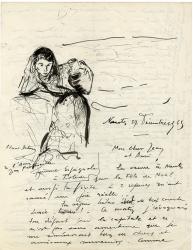 BERTREUX EdmondLettre autographe signée, adressée à M. Preteseille, avec dessin à lencre représentant une jeune femme accoudée. Nantes, 27 décembre 1965 ; 2 pages in-4°. « En venue à Nantes pour la fête de Noël et aussi ta visite à 2 reprises mont causé une joie réelle.Ton séjour, hélas était de trop courte durée. Ce matin jévoquais ton départ pour la capitale et ce nest pas sans amertume que je me remémorait bien de chers et amicaux souvenirs »