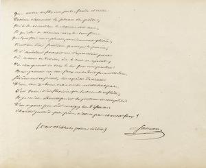 SAMSON Joseph-IsidorePoème autographe signé. Sans date ; 1 page in-4° oblongue. Extrait de L'Art théâtral, poème inédit en 16 vers. [Provient d'un album de Mlle Roger, actrice au Théâtre- Français].