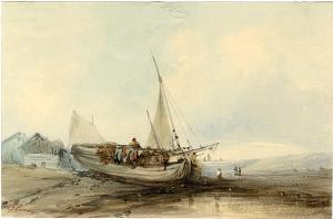 ÉCOLE FRANÇAISE DU XIXe.Marine. Aquarelle. Signée en bas à gauche « C. Texier ». 14 x 21 cm. Petite restauration au milieu en haut.