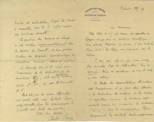 HENRY CharlesLettre autographe signée. Madrid, 28/1/19 ; 4 pages in-8° sur papier à en-tête Universidad central Facultad de Ciencias. Importante lettre écrite depuis Madrid où Henry est en mission scientifique, il écrit aussi dans cette lettre de formules et calculs. « La question des saveurs et odeurs a été résolue expérimentalement par les spectres de Donatt ; et par généralisation des propriétès carastéristiques des sensations voisines : coloré et auditive. La formule (94) p.59 n’est que l’expression de la définition de la sensibilité ».