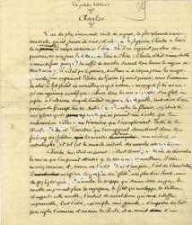 LENÔTRE GeorgesManuscrit autographe signé « La petite histoire — Charles ». 6 pages 1/4 in-4°. « L’un des plus émouvants récits de voyage, le plus extraordinaire, sans doute, qu’ait jamais été écrit, est celui que le physicien Charles a laissé de sa mémorable et unique ascencion en ballon. Oh! il ne s’agissait pas alors de parcourir en cinq jours, la distance de Paris en Chine : Charles obtint l’immortalité à moins de frais puisqu’il lui suffit de survoler durant trois heures la région de Montmorency. Il n’était pas le premier, d’ailleurs, à se risquer parmi les nuages : quarante jours auparavant Pilâtre des Rosiers l’y avait précédé ; mais l’ascension de celui-ci fut plutôt un merveilleux coup d’audace, — un coup de folie même — qu’une expérience scientifique : s’élever dans les airs au moyen d’un globe en papier à l’intérieur duquel brûlait un grand feu de paille, tout voisin d’une provision de fourrage très sec destiné à alimenter la flamme. » Très intéressant.