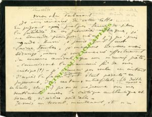 FRIESZ Émile-OthonLettre autographe signée, adressée au critique d’art Adolphe Tabarant. Paris, 3 avril 1925 ; 1 page 1/2 in-4°. « En jugeant après quelques heures de plus la futilité de ces grossières attaques, je me demande pourquoi même j’y ai pris garde. Aussi, je pense qu’il faut laisser tomber, je m’excuse de vous avoir dérangé, mais je vous remercie effectivement du concours amical que vous m’aviez prêté. Connaissant la mauvaise foi de mon critique […] je n’aurai pas voulu […] qu’on se méprenne sur les sentiments envers la critique authentique décence, si sévère soit elle. Je suis au travail […] et n’ai plus le temps de m’occuper des sornettes de ce triste benêt insolent. »
