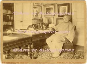 Alexandre DumasGrande photographie (140 X 190 mm) de la série « Nos contemporains chez eux » du photographe Dornac. Belle photographie représentant Alexandre Dumas à sa table de travail.