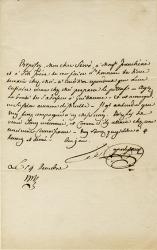 KAPODISTRIAS Ioannis AntoniosLettre autographe signée, adressée à M. Servio. 14 décembre [1813-1814] ; 1 page in-8° « Proposez, mon cher Servio, à Monsr. Franchini et à son frère de me faire lhonneur de dîner chez moi, à condition cependant que leurs cuisiniés vienne chez moi préparer le pilage, ayez la bonté de sadresser à Guillaume et cet arrangement ne soufrira aucunes dificultés. Il est entendu que vous ferez compagnie à ces messieurs. Priez les de venir sans cérémonie, et comme sils allaient chez une ancienne connaissance. Vous savez que je dine à 4 heures et demi. »