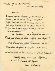 Lettre autographe (minute), adressée à Paul Valéry