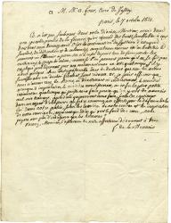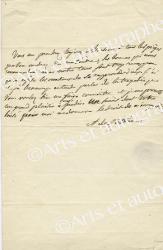 CUSTINE Astolphe , marquis deLettre autographe signée, adressée au comte Jules de Resseguier. Sans date ; 1/2 page in-8°. Cachet de cire rouge. « Les hommes qui nous raccommodent avec notre tems sont trop rares pour qu’on refuse les occasions de se rapprocher d’eux. J’ai déjà beaucoup entendu parler de la tragédie que vous voulez bien me faire connaître et je me promets un grand plaisir à vous prédire un succès ».