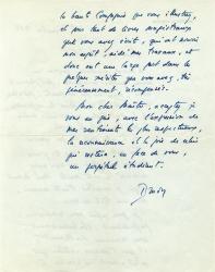 DRUON MauriceLettre autographe signée [adressée à J. Carcopino]. 11 octobre 1966 ; 1 page in-4°.« Je viens de poser ma candidature au fauteuil de l’Académie française laissé vacant par la disparition de Monsieur Georges Duhamel, et je suis très vivement désireux de me présenter à vous.[…] Je me réjouis, je vous le confesse, d’un usage dont j(attend qu’il exauce le souhait que j’ai, depuis longtemps, de vous connaître et de vous exprimer autrement que par lettre ou par livre, la grande admiration que je vous porte ». Maurice Druon a été élu le 8 décembre 1966.