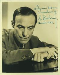 BRAILOWSKY AlexandrePhotographie avec envoi autographe signé, adressée au psychiatre Stanley Lewis Portnow. 1943 ; 25,5 X 20,5 cm. « To Stanley Lewis Portnow in remembrance of A. Brailowsky. November 1943. » Photographie de Haloman N.Y.