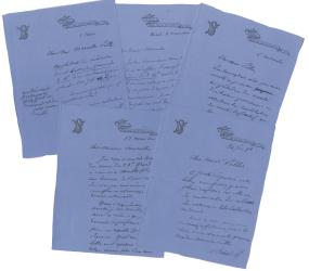 SCHOELCHER Victor5 lettres autographes signées au député Marcellin Pellet, 24 février - 6 novembre 1892 ; 6 pages 1⁄2 in-12°, sur papier bleu à son chiffre et à son adresse rue de la Victoire à Paris. Il lui transmet une réponse du conservateur du cabinet des estampes de la Bibliothèque nationale, à qui Pellet peut faire toute confiance. Il remercie par son intermédiaire M. Naintré qui lui offre un exemplaire de son Histoire des crimes du 2 Décembre [publié en 1852], ouvrage introuvable dont il ne possédait plus un seul exemplaire. En échange, il se propose d’envoyer son livre sur Toussaint Louverture et se dit prêt à recommander M. Naintré auprès de son ami le député Rouvier, en tant que fils d’un ami intime de Marc Dufraisse. La dernière lettre concerne les souscriptions pour un monument au général Garibaldi : « Je regrette seulement que Mess. Joseph Reinach et Pichon qui ont conçu le beau projet d’un monument à Garibaldi ne s’occupent pas plus activement de le mettre à exécution ».