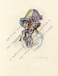 FAIVRE voir ABEL-FAIVRE Abel, dit ABEL-FAIVREAquarelle signée, représentant une jeune femme au chapeau fleuri. Sans date ; 1 page in-4°.