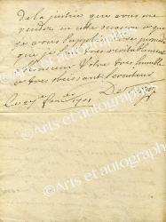 CANSON Anne-Jacques-Barthélémy Barou de La Lombardière deLettre autographe signée, adressée au sénateur Boissy d’Anglas. Annonay, 26 juillet 1807 ; 2 pages 1/2 in-4°, adresse avec marques postales.Très intéressante lettre sur le monument dédié aux frères Montgolfier. Il a cherché des moyens plus économiques auprès de M. Duvet « Nous avons reconnu qu’il n’était point en aussi mauvais état que nous avions lieu de le craindre et il nous a paru qu’avec l’aide et les avis d’un platrier intelligent que nous avons icy, nous pourrions parvenir à nous passer de secours étrangers, à l’exception toutefois de ce qui regarde les changements d’inscriptions et la suppression des armoiries de la province que l’aigle tient dans une de ses serres. » Il propose d’envoyer la table à M. Durandé pour changer les inscriptions et l’aigle. « Si le monument ne portait pas déjà et le nom et le médaillon des frères Montgolfier, on aurait pu graver leur chiffre à la place des armoiries. […] L’ouvrier sur lequel nous fondons nos ressources est absent depuis quelques jours, mais ne tardera pas j’espère de revenir. Au moment de son arrivée nous nous emparerons de lui et nous haterons autant que possible la besogne. Il nous tarde de voir enfin élevé le monument qui a éprouvé bien des retards et des contrariétés. »