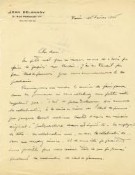 DELANNOYEnsemble de 8 lettres autographes signées et d’1 lettre signée, adressées à René Brest. De 1936 à 1941 ; formats divers. « Trouvez ci-joint les éléments d’un article-interview que je remets à votre sagacité. Je vous passe les formules de publicité... Mais pourquoi n’en ferais-je point ! ... J’aimerais que vous en gardiez l’essentiel et si possible que vous le réserviez à un journal de grande diffusion. Dites-moi aussi ce que vous en pensez et ce que vous comptez en faire. » ; « Puis-je vous demander la faveur d’une insertion dans Paris-Soir ? Voici la note en question. J’espère, dans un temps très proche vous réserver la direction publicitaire d’un film. » ; « Je n’ai pas été tellement étonné de vous lire, ayant à plusieurs reprises, vu votre nom dans les journaux. J’ai même eu l’occasion récemment de l’évoquer avec mon ami Paul Lorenz qui est à “7 jours”. […] J’entends bien l’idée que vous en avez et ce que signifie dans votre esprit le mot “Back Street”. Mais pour vous donner mon avis, il me faudrait lire le scénario que vous en tirerez. » ; « Merci de votre promptitude et de votre amabilité. A l’occasion de vous rendre la pareille. » ; « Puis-je vous demander de bien vouloir faire passer à Paris-Soir et dans les journaux que vous jugerez bon le petit écho suivant : Jean Delannoy réalisera prochainement avec Bernard de Laour un grand film dans les milieux automobiles. Junie Astor, la belle interprète de “Club de femmes” a écrit le scénario de “Contact” et sera l’une des vedettes de ce film. » ; « J’ai lu votre “Fauvette” et je crois évidemment que le sujet, en le simplifiant peut faire un excellent film public. » ; « Je prépare le découpage de “Women’s Club” qui semble vouloir se décider enfin. » ; « Je pense qu’ainsi l’article gagne 100 %. » ; « Pourriez-vous me rendre le service de faire passer dans les journaux où vous collaborez une petite note rappelant que : “C’est M. Jean Delannoy qui assurera la collaboration à la mise en scène de “Club de femmes” ».BREST René (René Bomio, dit) [Paris, 1906 - id., 1998], journaliste et traducteur français, (fils non reconnu de Robert Schreiber), filleul d’Emile Cohl « Les Échos » prennent des initiatives pour valoriser leur image et améliorer leur efficacité. Ainsi, en juillet 1928, le journal invite 400 Américains à un congrès de détaillants. Il se dote de moyens nouveaux : un agrandissement de format, en janvier 1929 ; la création d’un poste de secrétaire de rédaction, confié à Jacques Rozner, en juin 1933 ; puis, en 1934, celle d’une rubrique cinéma, tenue par René Bomio (fils non reconnu de Robert Schreiber).
