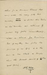 WELLS Herbert GeorgeLettre autographe signée. Spade House, Sandgate, le 4 juillet 1903 ; 2 pages in-8°, en anglais. Traduction : « J'ai, depuis longtemps, maintenu que, en dehors de toute considération de la sympathie naturelle entre Français et Anglais, une étroite alliance entre leurs pays et les deux grandes Républiques du Monde et la seule saine et clairvoyante politique pour les hommes d'État anglais. J'accueillerai avec effusion n'importe quel plan pour un tribunal permanent qui réglerait les nombreuses petites mais irritantes affaires en ce moment en litige entre les deux pays et préviendrait toute future contestation. Je suis un Libéral et un Républicain mais si quelque chose peut justifier les privilèges de notre Roi, c'est le rôle qu'il a joué en faisant venir adroitement ce présent rétablissement de nos sentiments mutuels. »