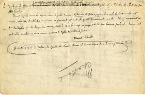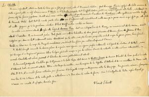 RICHEMONT (Louis Hector Hébert, dit)Lettre autographe signée, adressée à la duchesse d’Angoulême. 10 avril 1828 ; 3 pages in-4°. Il raconte sa prétendue histoire depuis l’enlèvement de la prison du Temple, véritable première version de ses mémoires qui furent publiés en 1831 puis en 1840 avec des variantes importantes. Il implore la clémence de sa « grande Princesse ». « Je ne sais quel ton prendre, je ne sais par où commencer, et c’est à ma sœur que je veux écrire ! Ah, malheureux ! que suis-je devenu, n’est-ce-pas un songe ? Puis-je encore espérer que j’ai une sœur ? Ne suis-je pas oublié de tout le genre humain ? Ne puis-je pas compter au rang des morts ? Ma sœur n’a-t-elle pas pleurer sur mon tombeau ? Oui, grande Princesse, c’est votre frère malheureux qui trace ces lignes ; il vit encore, il n’a pas péri comme on l’avoit prémédit. » Il débute alors le récit de ses rocambolesques aventures : « Grande Princesse, en ôtant le masque qui m’a caché depuis si longtems, je vous dirai que ç’a été le général Charette qui m’a tiré du Temple et qui me fit conduire dans la Vendée. C’est lui, cet homme généreux et magnanime qui m’a arraché des mains des bourreaux ; c’est lui qui m’a tenu lieu de père, pendant quatre ans ; mais après sa défaite, j’ai été obligé de me rendre entre les mains des républicains et de me résoudre, et si je voulais vivre plus longtems de prendre du service avec les tirans qui avoient massacré mes parens. Il m’a fallut servir la République, et j’ai servi jusqu’à 1807. Après la bataille de Friedland où je suis blessé à la jambe gauche, après la paix de Tilsitt, je pris mon congé et j’épousais la fille d’un gentilhomme prussien avec qui j’ai vécu très heureux ; mais Dieu qui vouloit me mettre à une autre épreuve me l’a enlevée ; de sorte que je suis rester veuf, et avec cinq enfants, deux fils et trois filles. » Il se décrit déjà âgé, usé par les chagrins, les cheveux blanchis et a fait le vœu de ne jamais retourner en France ; il prend cependant la liberté de lui dire où il est. « Si cependant Dieu vouloit nous réunir un jour, je crois que cela ne vous serez pas désagréable. Pour ce qui dépend de mes droits en France, j’y renonce, seulement je souhaite que Sa Majesté Charles Dix eut la bonté de me donner un nom quelconque, parce que depuis que je suis sorti de Paris, je vis sous un nom supposé. » Il termine ainsi sa lettre : « Si pourtant vous avez des doutes, gardez cette lettre pour vous. Je ne me ferai connoître que par mon testament au lit de la mort. ». Au dos, cette mention « lettre du soi-disant dauphin Louis 17è ». En 1849, il assignera en revendication d’héritage la duchesse d’Angoulême.Sont jointes 3 reproductions de portraits et de tableaux.