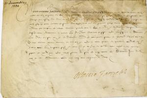 FARNESE OttavioPièce signée. 31 décembre 1552 ; 1 page in-4° oblongue sur vélin. Tache dans langle supérieur.