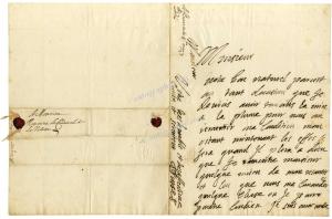 JOINVILLE François de Guise, prince deLettre autographe signée, adressée au cardinal de La Vallette. Fleurance, le 8 mai 1637 ; 1 page in-4°, avec adresse avec cachets de cire rouge à ses armes sur lacs de soie rose. « Vostre bon naturel paroit an tant docasions que je devrois avoir toujours la min a la plume pour vous an remertier ma condition man ostant mintenant les effes se sera quand il plera à Dieu que je rencontre Monsieur. Quelque moien de man resantir et lors que vous me comanderes quelque chose ou je pouré paretre ».