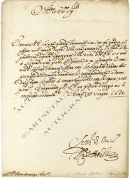 ALEXANDRE VIII en latin Alexander VIII, en italien Alessandro VIII (né Pietro Ottoboni)Lettre signée avec compliment autographe « Sempre de cuore Il Cardle Ottoboni », adressée à Pietro Mocenigo. Rome, 30 juin 1668; 1 page in-folio en italien. Il remercie de l’avoir avisé de son départ pour l’ambassade d’Angleterre et lui adresse ses vœux.
