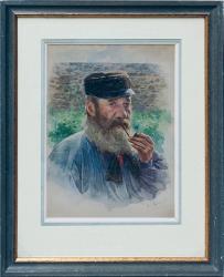 ROBAUDI Alcide ThéophileMarin fumant la pipe.Aquarelle signée en bas à droite.35,5 x 25,5 cm (à vue).Encadrée.
