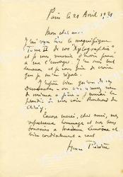 Lettre autographe signée, adressée à Colette.
