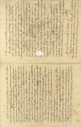 ROUGET DE LISLE Claude-JosephLettre autographe signée « R.L». [28/29 décembre] 1831 ; 3 pages in-8°, avec manque dans la 3 ème page à l’endroit ou il y avait le cachet pour ouvrir la lettre. « Mais, bon Dieu ! Pays qui vous a demandé de prendre sur votre compte mes inquités et de vous donner pour se [père] de ma pauvre allemande ? Que Diantre, je ne suis pas assez votre ennemi pour cela non ; ce que je vous demandais,c’était par vous ou par quelqu’un d’autre, autant que vous le pourriez sans vous gêner de mettre si la chose est possible, l’infortunée adelaïde [...] avant et de la faire lire comme [...] d’un père inconnu ; quitte, s’il y a lieu, ce que je ne crois pas, à vous intéresser à la chose, pour aller plus [Lire?], lorsque le moment serait venu, que je sois encore, ou que je n’y sois plus. Au reste ou je me trompe, ou ce moment ne vendra point ; car bien que la pièce soit par son origine entachée d’un vernis de romantisme assez prononcé. Elle n’est à sa hauteur ni du joueur, ni de Richard d’Arlington, ni des six degrés du crime, ni de toutes ces [astusces], et sans doute sublimes [...] qui dit-on sont aujourd’hui, les hommes de la scène françaises comme les souvenirs de Mr CH. de Nodier remplacent ces vieilleries, ces rocoques de [p...] et Virginie et de .... , dans toutes les bibliothèques. quant à mon nom, gouailleur que vous êtes ! A ce beau nom qui seul répond d’un succès. Je vous renvoie à ce que je vous ai conté de mes rapports avec Mr Harrel pour vous prouver à quel point je peux être la dupe de vos [...] complimenteur certainement je n’entamerai pas de nouvelles relations avec ce cher homme pour peu qu’il continuât sur le ton qu’il a pris il faudrait finir par se facher, ert j’en ai plus la force, outre que selon toute apparence, la chose n’en vaut pas la peine. Quoiqu’il en soit, mon cher ami, vous avez tout bien fait de me parler franchement . C’est le ton qui m’a toujours convenu et me conviendra jusqu’au bout je l’espère, à moins que ma pauvre tête ne s’en aille tout à fait, comme elle est entrain de le faire. Mr [Maders] vous a t’il porté votre recuiel ? Il vint le chercher, il y a 15 jours, et je ne l’ai pas revu. Je crois vous l’avoir dit ; il a dü me trouver un bien maussade personnage ! Je travaille a la copie de quiberon de bec et d’ongles : mais mon impotance et la brièveté des jours me permettent pas qu’elle avance beaucoup. Qu’il est heureux pour vous que je ne vous aye pas sous ma patte, non pour vous imposer la corvée de la copier, je n’oserais ; mais vous n’échapperiez pas à celle de la lire, ce qui serait bien pir, quoique moins long. Et votre politique, qu’en dites vous? Quel gachis mon cher ! Quelle canaille que Mr le Président du conseil! Commeje le connaissais bien ! Comme j’ai prévu , prédit en masse tout ce qui arrive! Quel malheure que notre pauvre Roi soit [infecté] d’un homme .... d’un brigand de cette espèce, briagand est le mot sans exagération ! Et puis encore, cette [...] de franchise! Que ne donnerais-je pas pour que certain nom n’ait pas paru dans cette excécrable affaire ! »